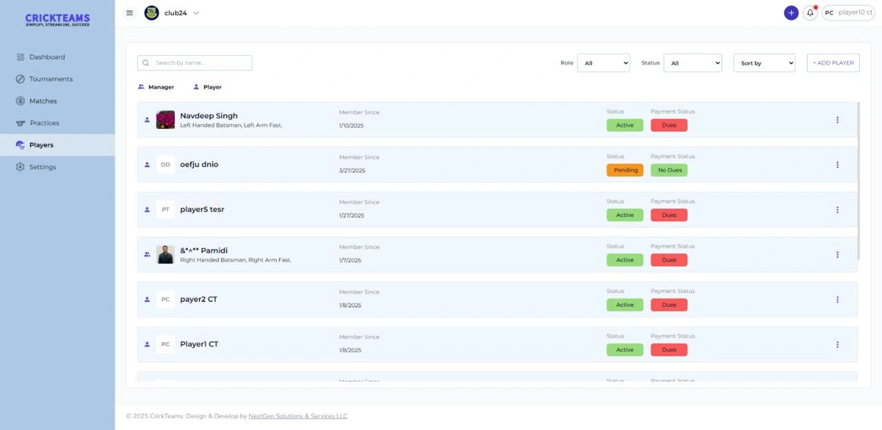 Clients using CrickTeams need a streamlined and user-friendly platform to effectively manage all aspects of their cricket teams. They require features that allow players to create personal profiles, monitor their performance stats, and track milestones over time. Team managers and coaches need tools to effortlessly schedule matches and practices, monitor attendance with personalized views, and send automated reminders to ensure high participation. Additionally, users expect integrated communication features to stay connected through shared updates, scoreboards, and media. Managing team finances is also a key need, with tools to track expenses, collect fees, and maintain financial transparency. Above all, clients want a centralized, secure, and accessible solution that simplifies team coordination, enhances engagement, and brings everything together in one convenient platform.
