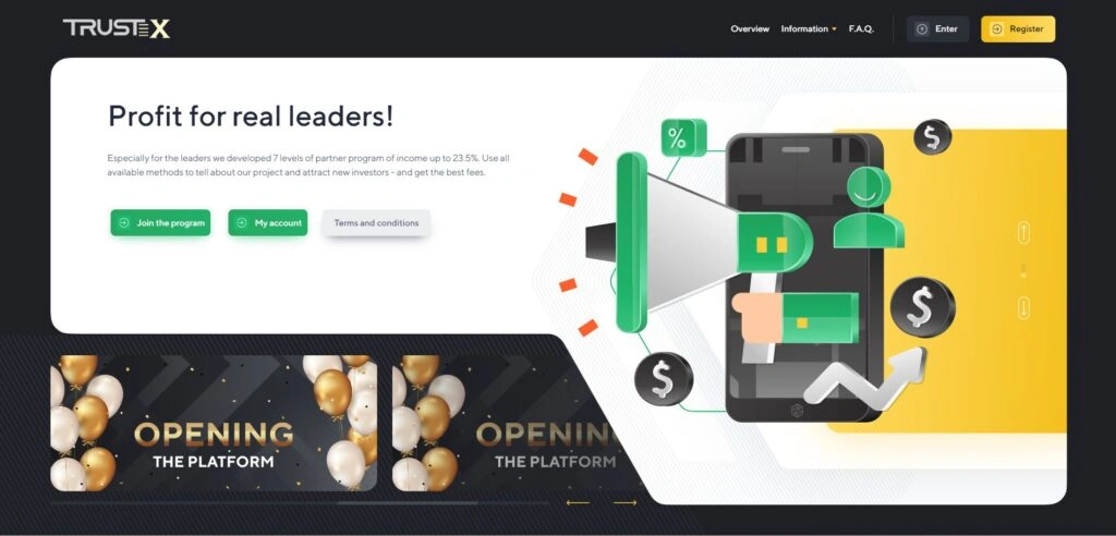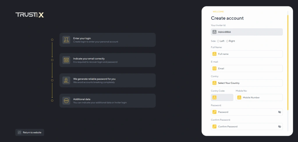 TrustX is an innovative platform built for seamless cryptocurrency exchange and NFT management. Designed with both users and administrators in mind, TrustX enables effortless USDT token deposits and withdrawals, ensuring secure and efficient transactions. The platform offers flexible premium membership packages, catering to a range of user preferences. A standout feature is its structured referral system, which provides users with transparent insights into their network and earnings through an intuitive tree view. With its dynamic feature set, TrustX delivers a robust and user-friendly environment for digital asset management.